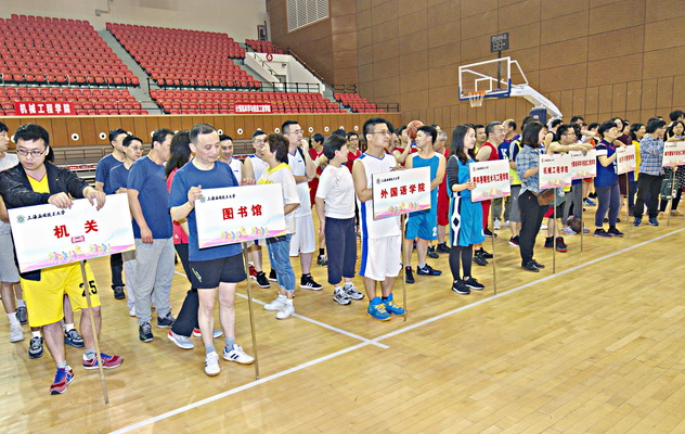 开幕式上,校工会介绍了围绕教职工健康精心设计的“健康1+N”系列活动背景。对本次篮球赛的宗旨、目的和篮球赛的筹备情况进行介绍,向积极参与广大教职工和协办本次比赛的部门和工作人员表示衷心感谢。裁判员代表、参赛队员代表相继进行了宣誓仪式,表示比赛过程中将积极参与、公正裁决。宣誓仪式结束,现场进入了高潮,现场16支参赛团队在教工篮球协会队员的带领下,进行精彩参赛口号秀,各部门工会结合部门特色设计的“逢投必进 艺术篮球!”“ 有理 必胜!”、“齐心协力,勇创佳绩” 、“实力见证,经管必胜!”、“ 快乐篮球,健康第一!”、“强者风范,机械学院!”、 “五四三二一,香料拿第一!”、 “Happy篮球,健康外院!”等等一一个精彩口号诠释了上应教工团结进取、健康快乐、朝气蓬勃、和谐共进的精神风貌!仪式最后,校党委副书记宋敏娟宣布上海应用技术大学第五届“健康校园杯”教职工“三对三”篮球赛暨男女混合投篮记分赛开幕。开幕式后,篮球比赛正式开始。16支队伍开始了首场激烈地比赛角逐,现场气氛热烈,高潮迭起。
