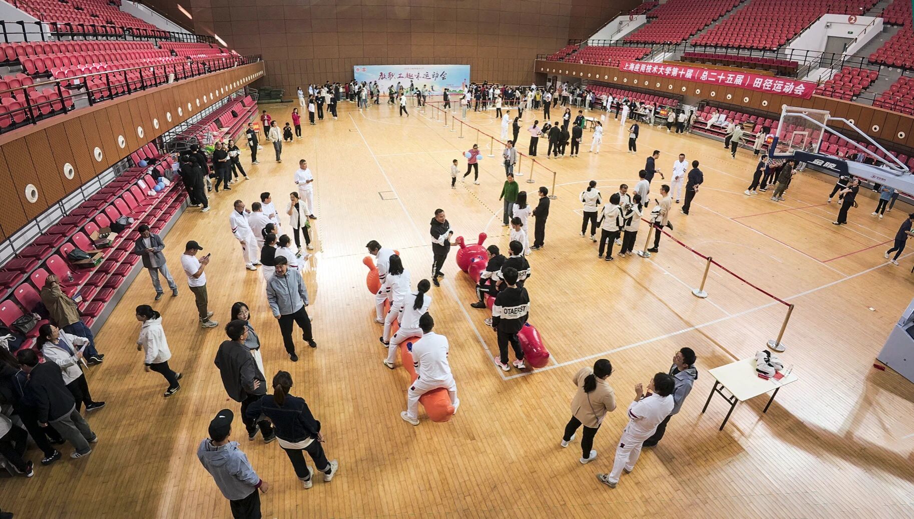 秋色染申城,活力满校园。2025年教工趣味运动会于奉贤校区体育馆圆满举行,各二级分工会的代表队及广大教职工积极参加。作为学校传统文体活动,本届运动会设置了包括个人竞技与团队协作在内的13个比赛项目,创下历年项目数量之最。数百名教职工齐聚体育馆,在欢声笑语中共同体验运动带来的快乐与激情。