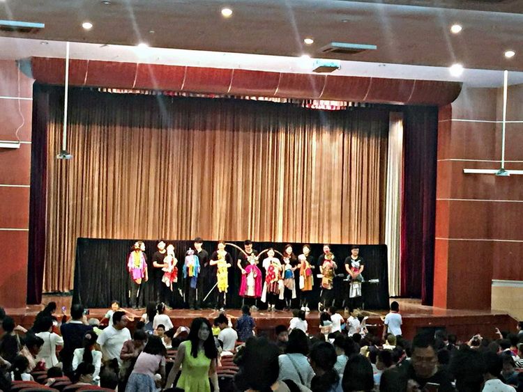 晚上的《孙悟空三打白骨精》木偶剧演出吸引了近三百多个教职工家庭参加,徐汇校区大礼堂座无虚席。演出前,演员与小朋友进行了木偶剧知识的普及互动,极大调动了小朋友们了解中国民族文化的兴趣。