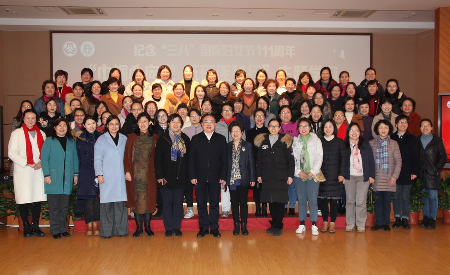 庆“三八”国际妇女节111周年“巾帼心向党砥砺逐梦行”主题学习,由校党委副书记、工会主席宋敏娟主持,校党委书记郭庆松代表学校领导班子向全校女教师们致以节日问候和祝愿,并发表题为《从党史学习教育中汲取智慧和力量》的报告。他从开展党史学习教育的重大意义、重要内容、重点安排三个维度进行了详细阐述,带领女教师开启学习党史教育热潮。最后,所有参会女教师们合影留念。
