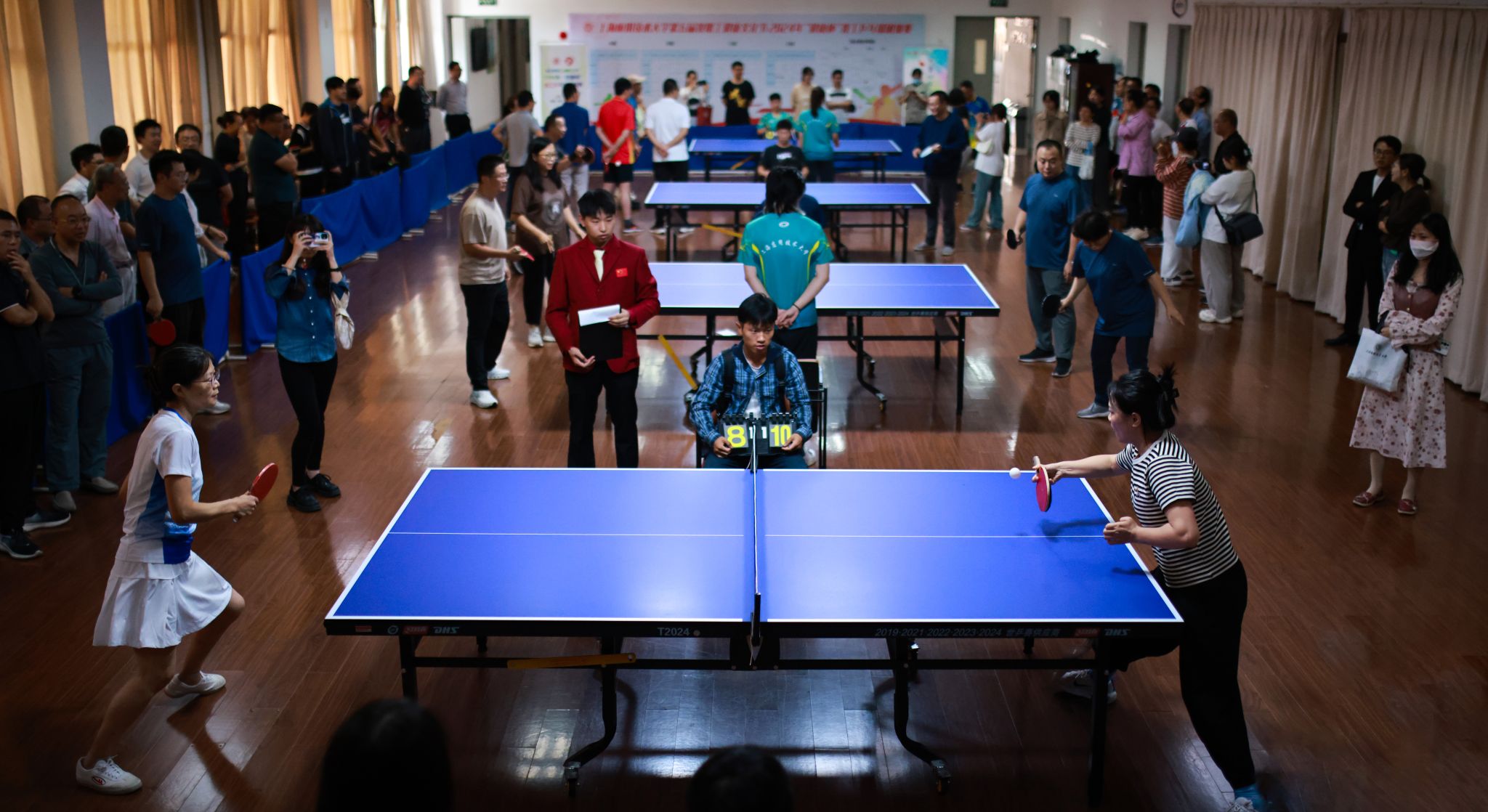 “健康杯”教工乒乓球团体赛是我校工会举办的品牌文体活动,自2014年至今已连续举办了五届。本项赛事为学校教职工们提供了展示球技、交流感情的平台,展现了上应教职工们积极向上的精神风貌和团结协作的团队精神,同时也增强了教职工之间的凝聚力和向心力,推动了校园健康文化的繁荣发展。