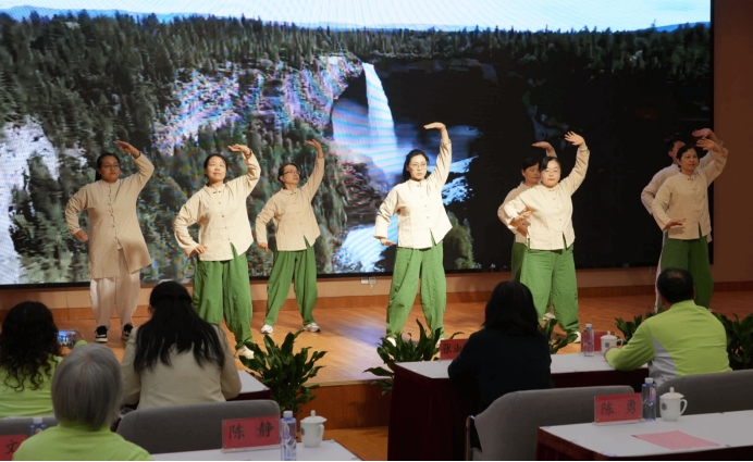 体教部教师与工会文体培训班学员献上精彩表演——武术招式利落,喝彩连连;八段锦展演,气韵生动,行云流水。全场教职工纷纷跟练,在舒展的动作中感受传统养生功法的魅力,活动现场“热气腾腾”,欢声笑语不断。