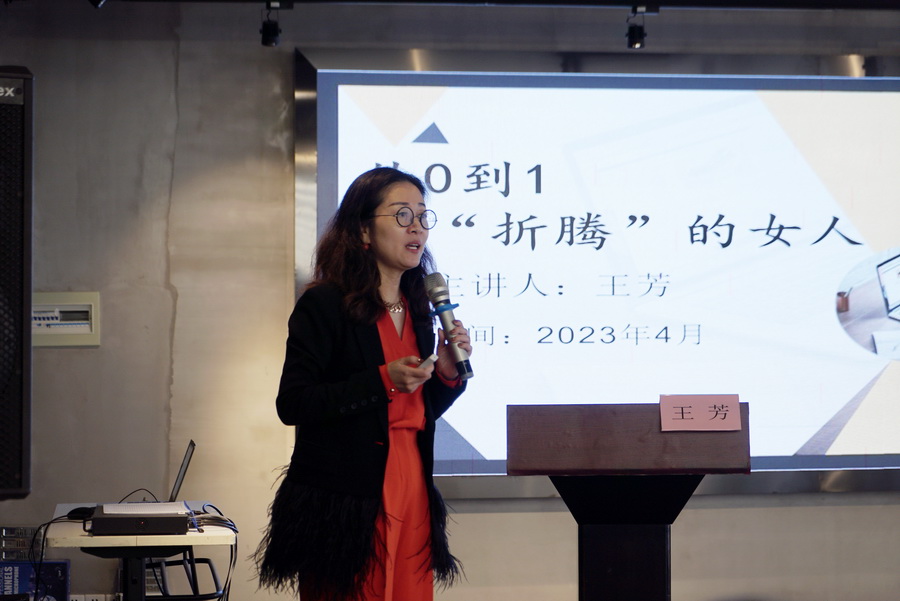 海阔·东岸文创园是金山首个民营市级示范园区,是一个兼具艺术、文化创意、科技、旅游等复合功能的体验式园区,并为青年创新创业提供孵化平台。王芳亲自领带小海鸥们进行参观,介绍了文创园的功能设计和特色艺术展品。园区内浓厚的艺术文化氛围、徽派木雕建筑、非遗手工坊、特色咖啡书店等都深深吸引了小海鸥们。随后,王芳和小海鸥们讲述了自己的创业历程,分享了她寻求职业生涯最优解的经历,实现了从教师到银行职员再到女企业家的角色转变。她勤于学习、勇于挑战、乐于思考,坚持做精做特,将咖啡馆、民宿等产业“折腾”得越来越有文化特色和文化品位。同时她秉持干事创业的魄力,积极承担社会责任,乐于奉献,坚持做正确而有价值的事,给小海鸥们传递了满满正能量!