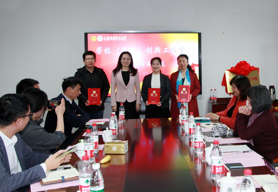 会上,校党委副书记、副校长王瑛和上海市劳模吴飞飞共同为学校劳模(先进)创新工作室揭牌。校领导为劳模(先进)工作室主持人颁发聘书。
