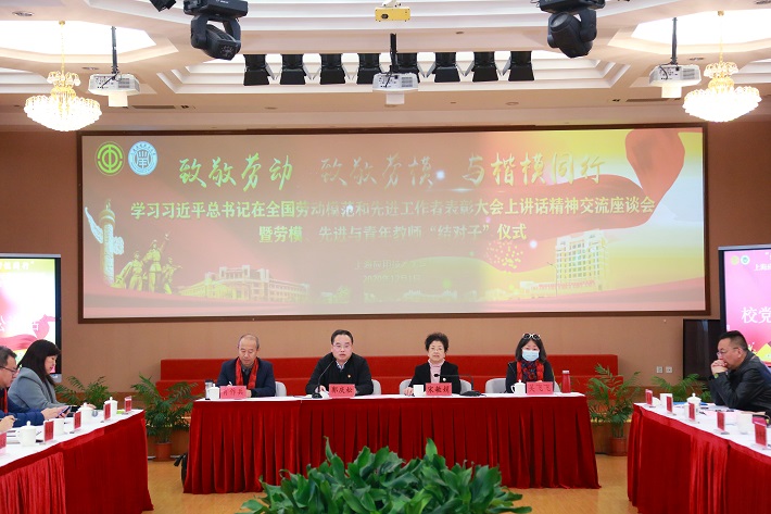 宋敏娟主持会议指出,她表示要深刻领会习近平总书记关于劳动精神和工匠精神,近年来,学校在选树劳模、先进典型方面取得了显著成效,涌现出上海市劳动模范、上海市五一劳动奖章、上海市三八红旗手等一批优秀先进典型。学校各级工会要发扬劳模、先进的奋斗精神,学工系统要积极开展劳动教育。发挥先进榜样作用,通过“传、帮、带”,将先进的工作经验、方法、成果进行传承,发挥劳模、先进品牌示范效应,助力高水平应用创新型大学建设,共同谱写中国梦上应强新篇章。