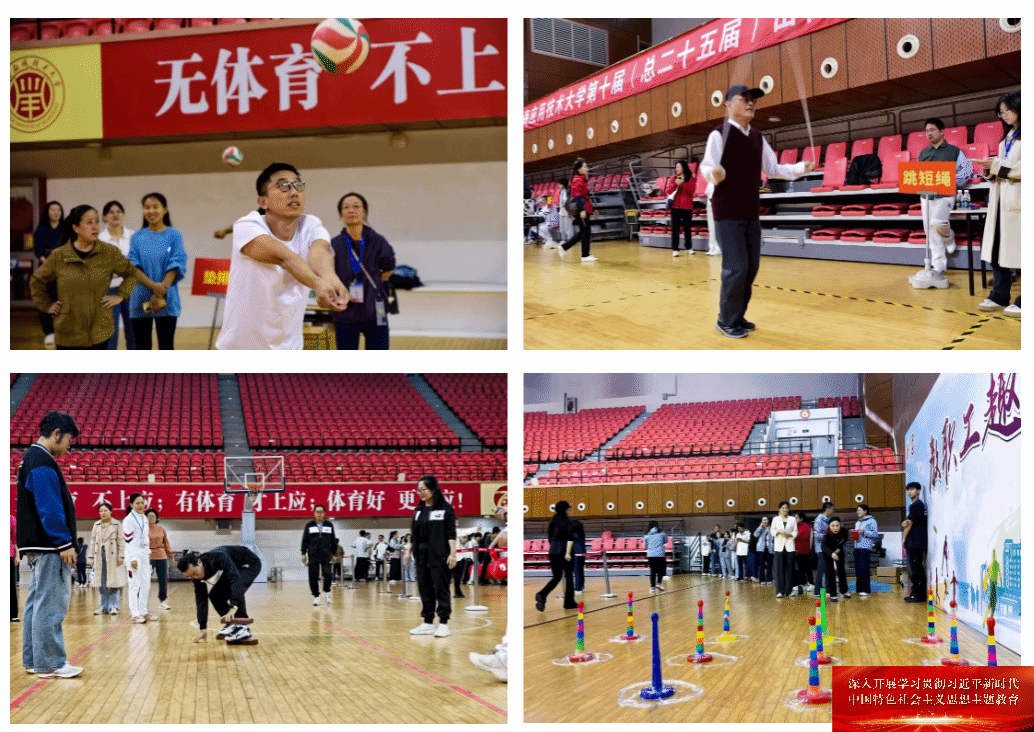 集体项目区更是高潮迭起,“快乐毛毛虫”的协调前行,“排球发球”的精准落点,“运球接力”的风驰电掣,“旱地冰壶”的智慧博弈,以及新增的“定点投篮”的优美弧线,无不展现着教职工们的运动风采。特别值得一提的是,本届运动会的掼蛋比赛吸引了32支队伍参与角逐。比赛现场,参赛教师四人一桌,或凝神思考,或果断出牌,智慧的碰撞与默契的配合将比赛氛围推向高潮。整个体育馆洋溢着欢声笑语,老师们暂时放下教案与科研,全身心投入这场趣味与竞技并存的运动盛宴,灿烂的笑容与秋日暖阳交相辉映。